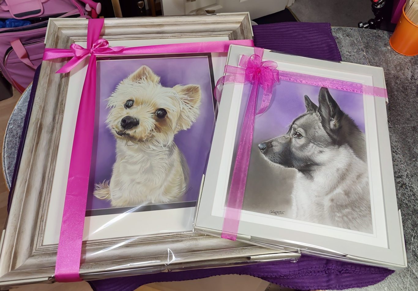 I have been drawing ever since I could hold a pencil, I have always felt it was a gift I was born with and have always pursued it with much passion. In 1993 I went to live in the Netherlands to work in boarding kennels where I decided to start drawing dogs, I attended many dog shows growing up and on returning back to the UK I started doing dog shows with a small stall to show my artwork and take commissions, 30 years on and my style has evolved into highly realistic and detailed artwork that takes many hours to create, it is vibrant and alive with a 3D appearance so that the subjects look as though they might jump off the page, bringing much emotion in each and every memorial piece.